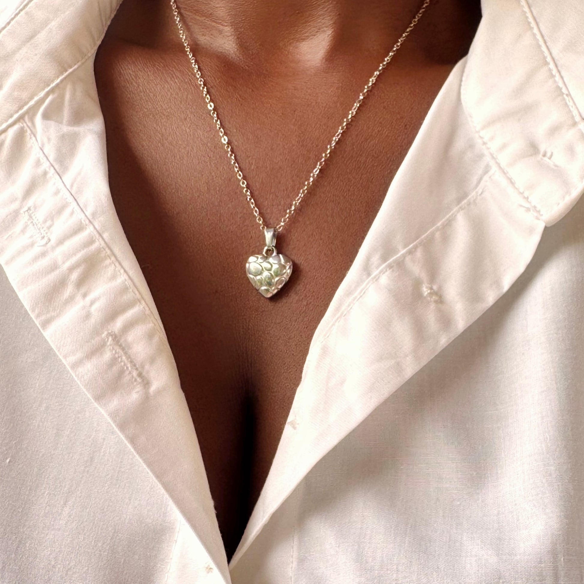The Stoned Heart Necklace is a perfect silver cross necklace. Made with a stainless steel smooth heart with stone patterned pendant, this necklace is silver plated and comes in length of 50cm. Its versatility allows for easy layering, making it a must-have accessory for any outfit.